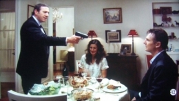 Jean-Claude : J'en sais rien et j'm'en fous ! J't'emmène à l'aéroport ! Tais-toi, Isabelle, tais-toi !! On y va, le dîner est terminé.
